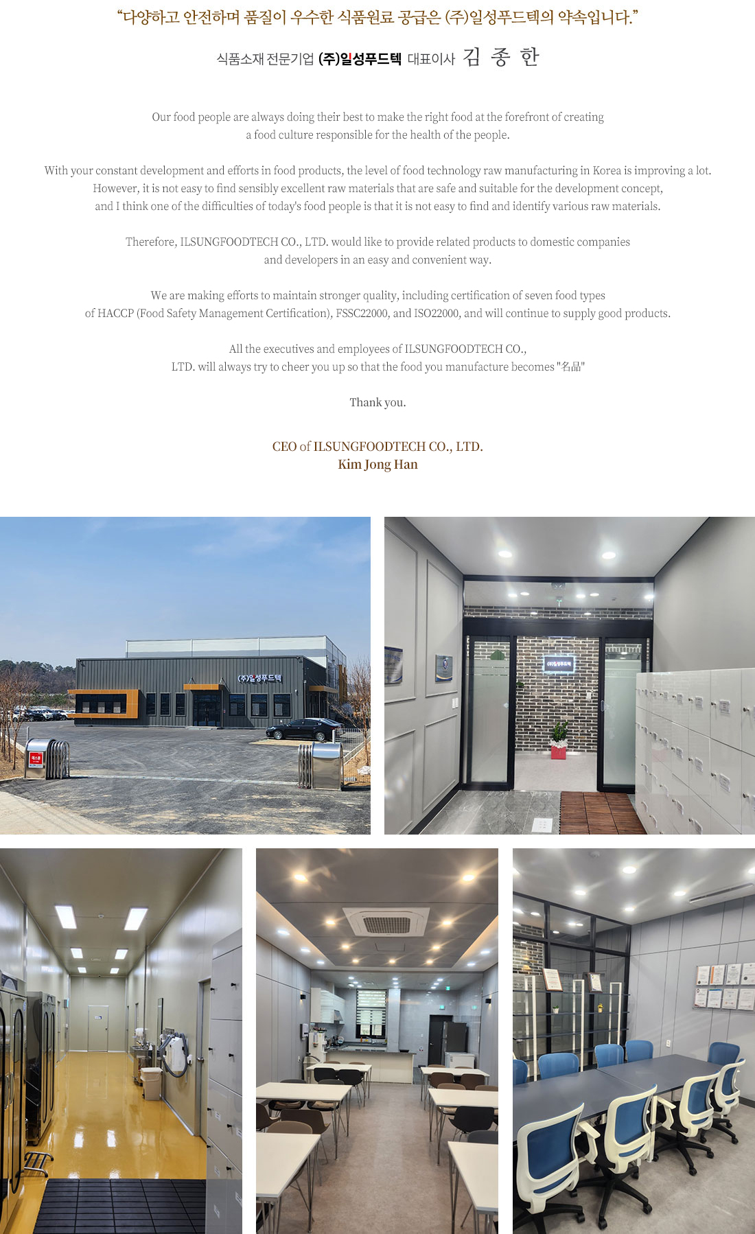 여러분께서 제조하시는 식품이 “ 名品” 이 되도록 (주)일성푸드텍 임직원 일동은 항상 옆에서 힘이 되도록 노력하겠습니다.